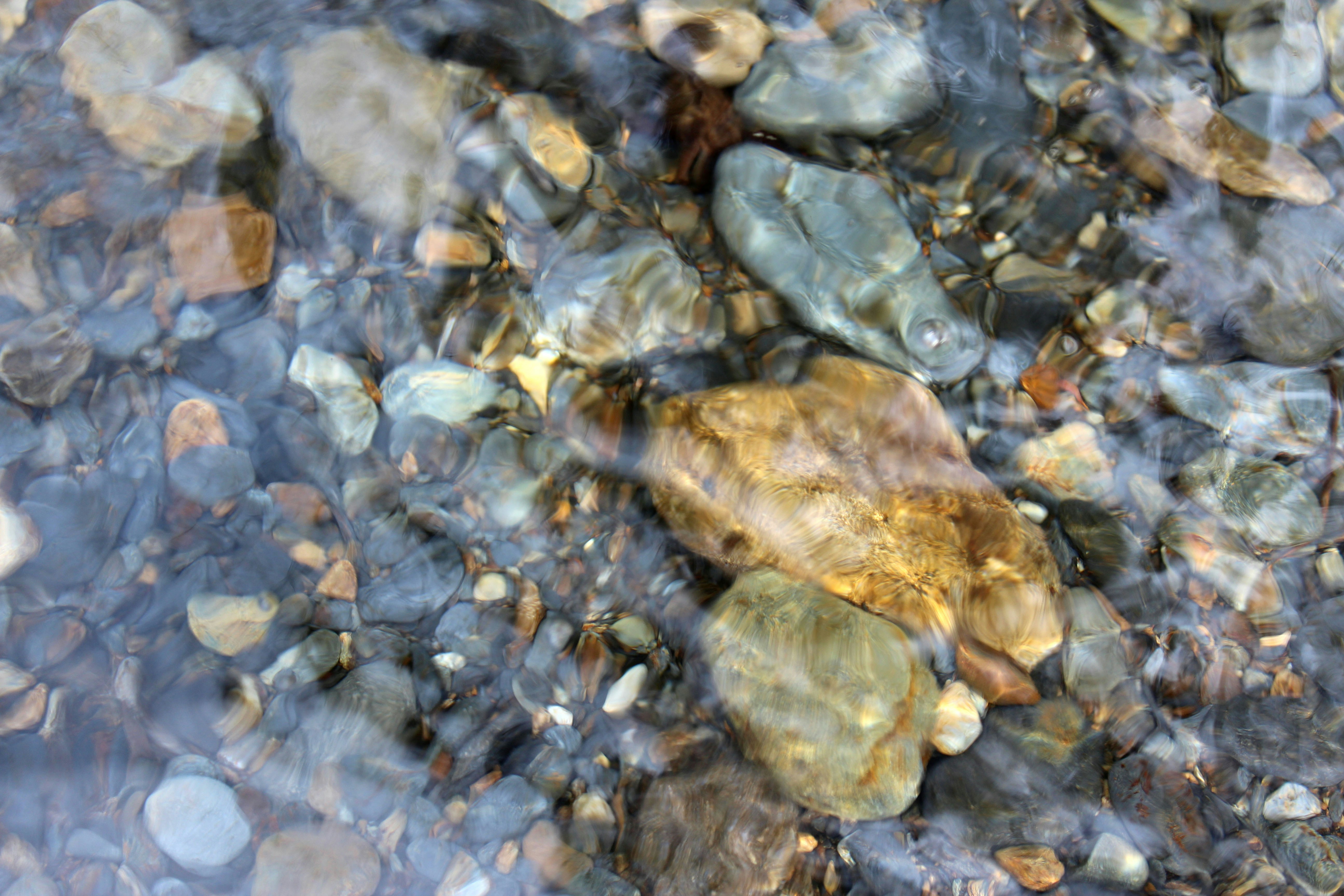 across a bright mosaic bed of glossy stones.